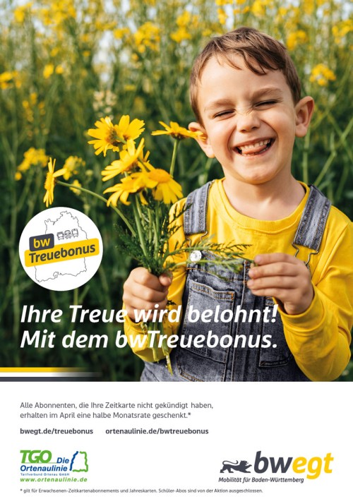 Weitere Infos sowie FAQs zur landesweiten Aktion bwTreuebonus finden Sie auf unserer Internetseite unter: www.ortenaulinie.de/bwtreuebonus